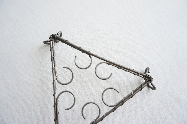スウェーデンで見つけた手工芸品、 Luffarslöjd(ルッファスロイド) ルッファスロイドとはメタル製のワイヤーを利用した道具のことで、 スウェーデン語で、Luffareは放浪者、Slojdは工芸と言う意味。 1800年代、ワイヤーや道具を携帯し、街の間を移動しながら 調理器具やキャンドルスタンドなどのインテリア品を作ることで 暮らしを立てる旅人が登場し、 彼らによってルッファスロイドが広がりました。 こちらは三角形の鍋敷きです。 きれいな形をしているのでオブジェとして壁に飾るのもおすすめです。 飾られていたのかひっかけるワイヤーも、あえてそのままににしています。 Size : 約 W16 × D14 × H3 cm 【ご購入前にご確認ください】 ・USED品のため経年によるキズや、使用感等ございます。 ・お使いのモニター環境により実物と色味が異なる場合がございます。 ・お届け時の梱包にはリサイクル材を使用しております。