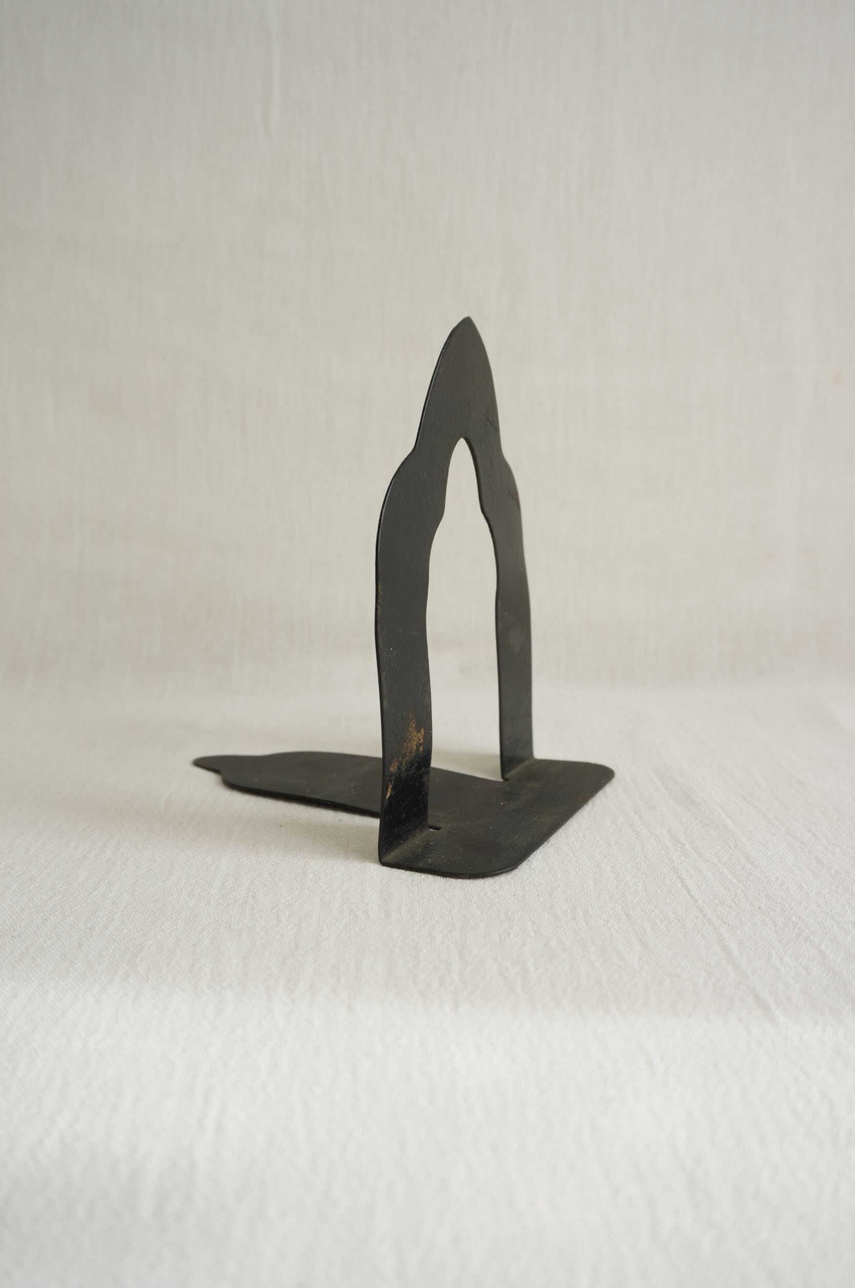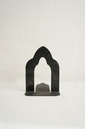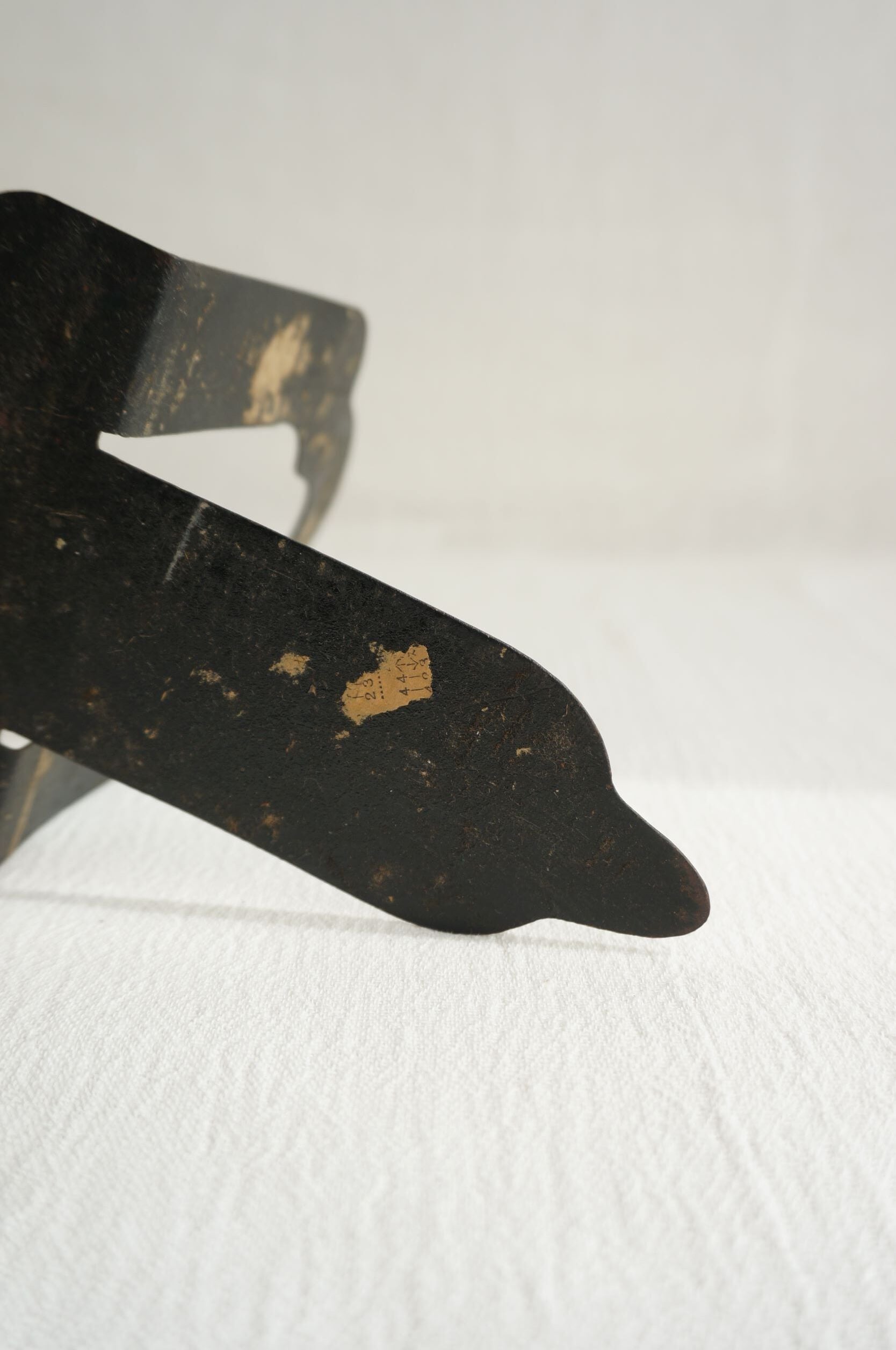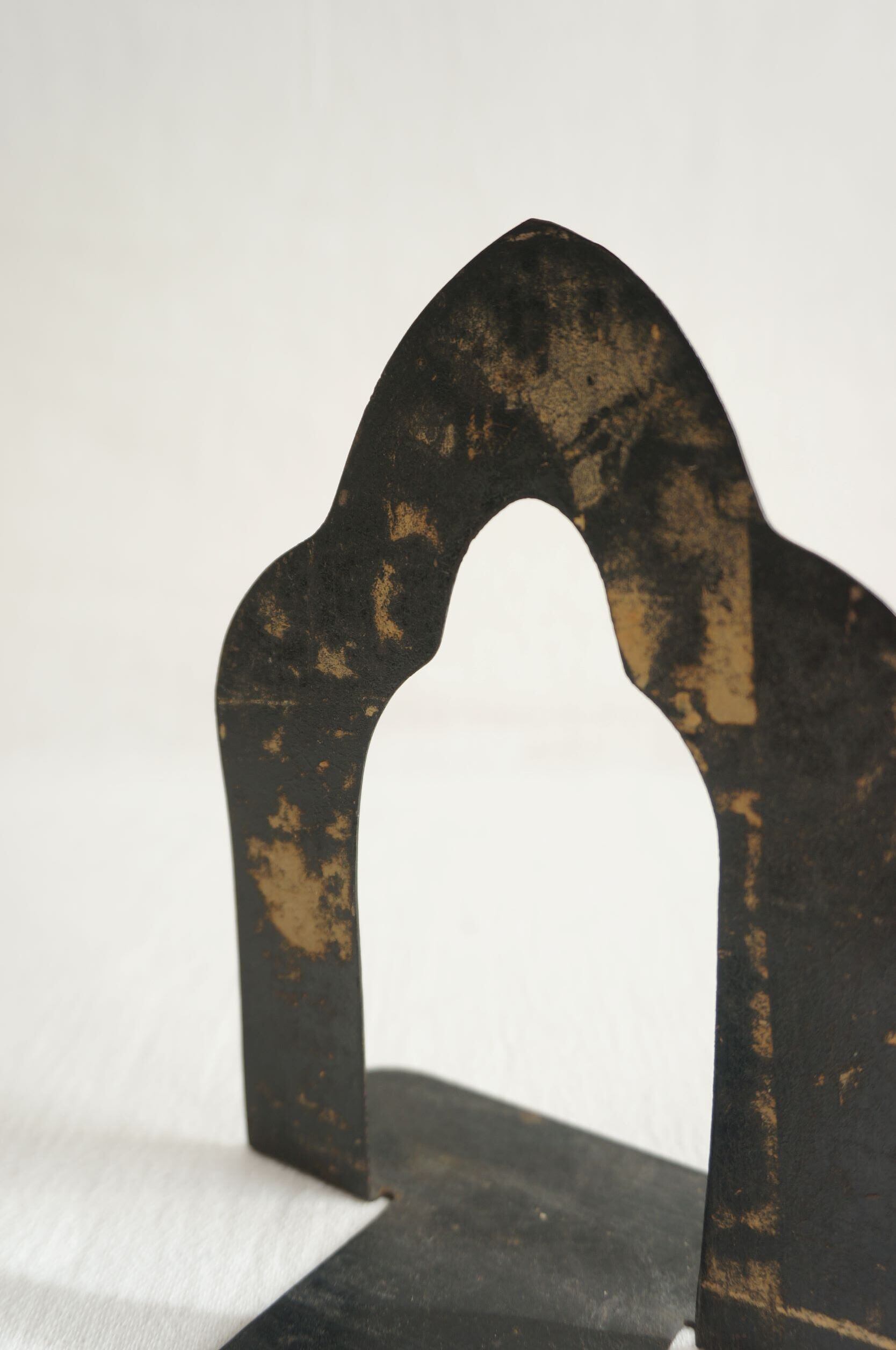 金属と塗装の経年変化、張り付いた古紙のムラが
