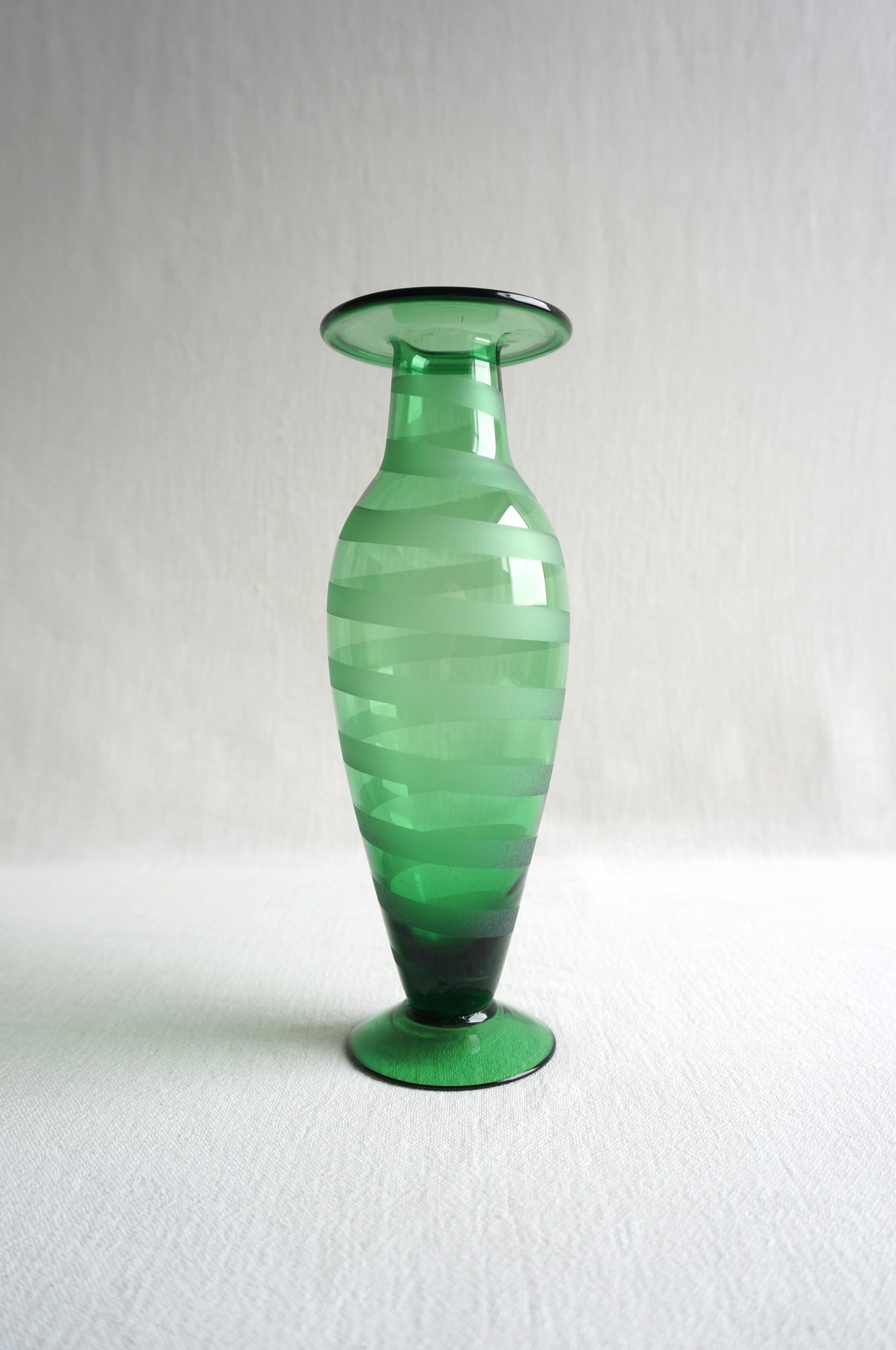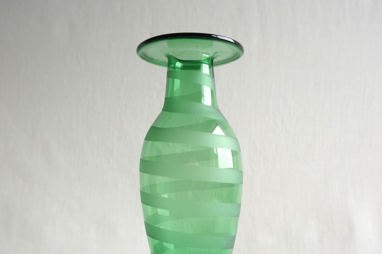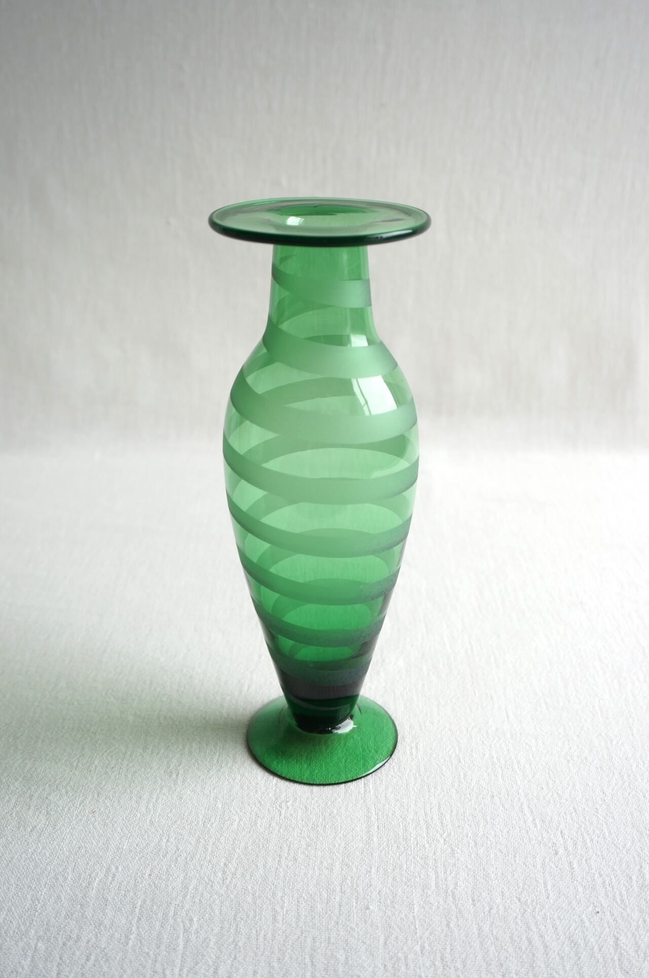 透き通ったグリーンのフラワーベースです。