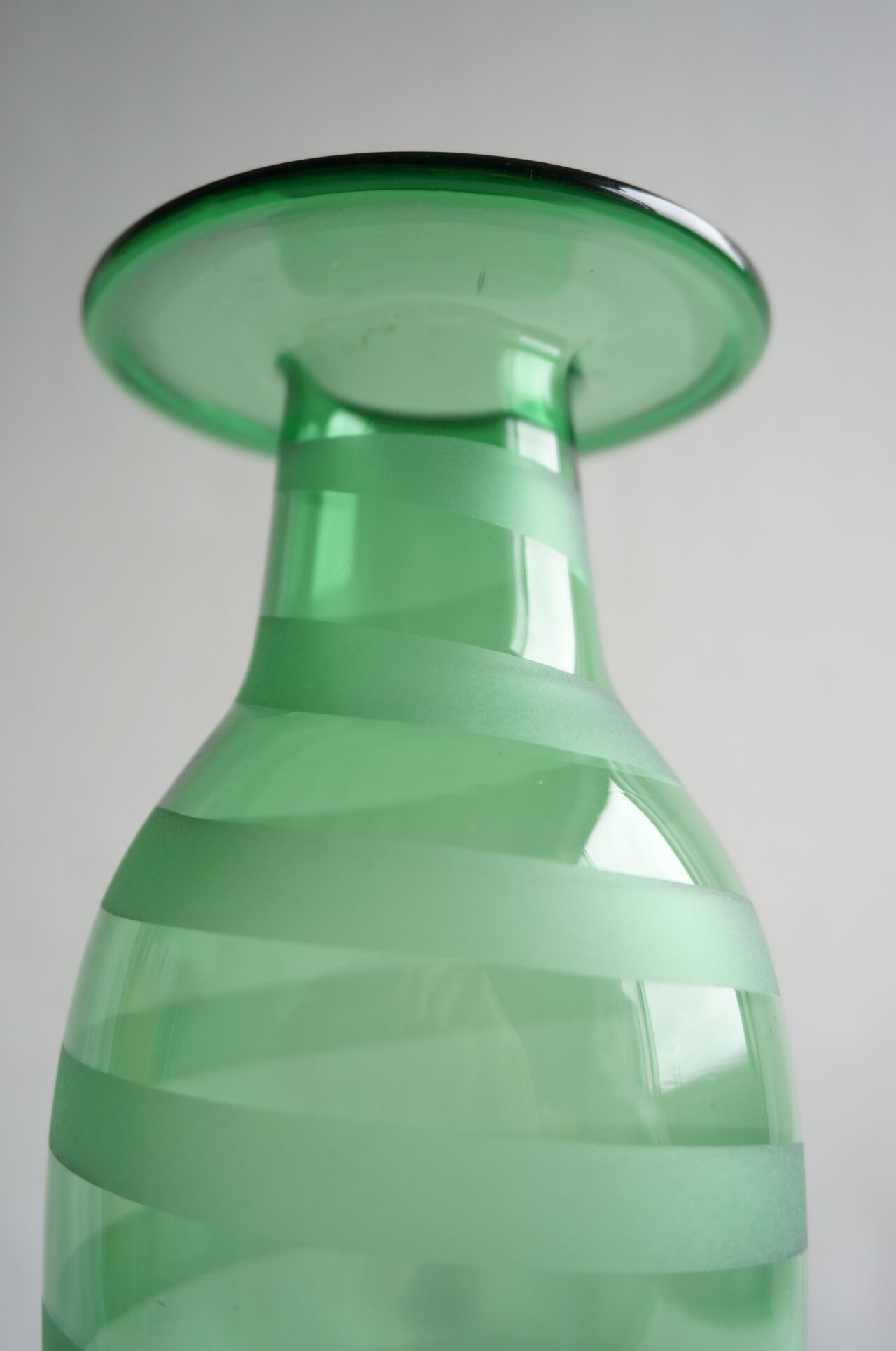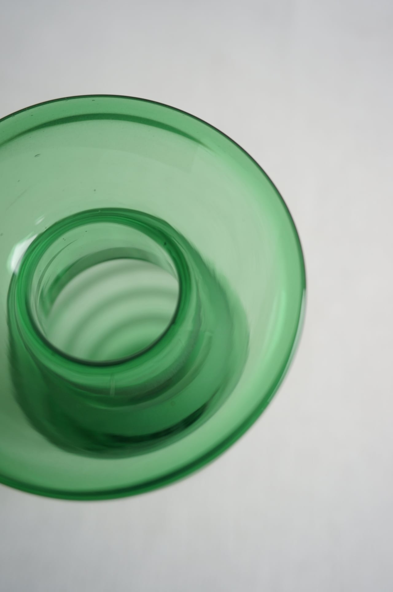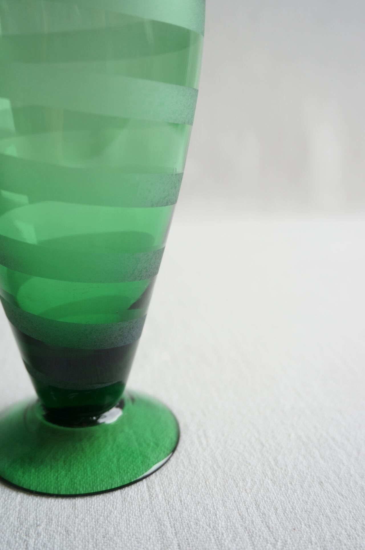 透き通ったグリーンのフラワーベースです。