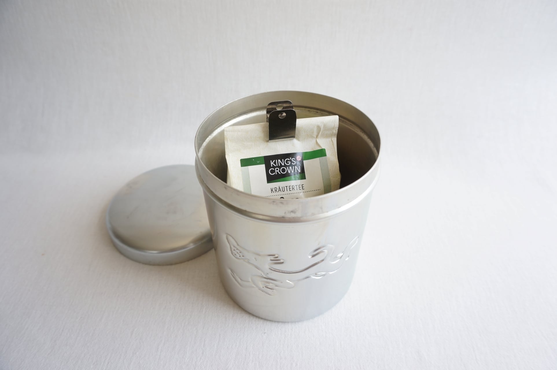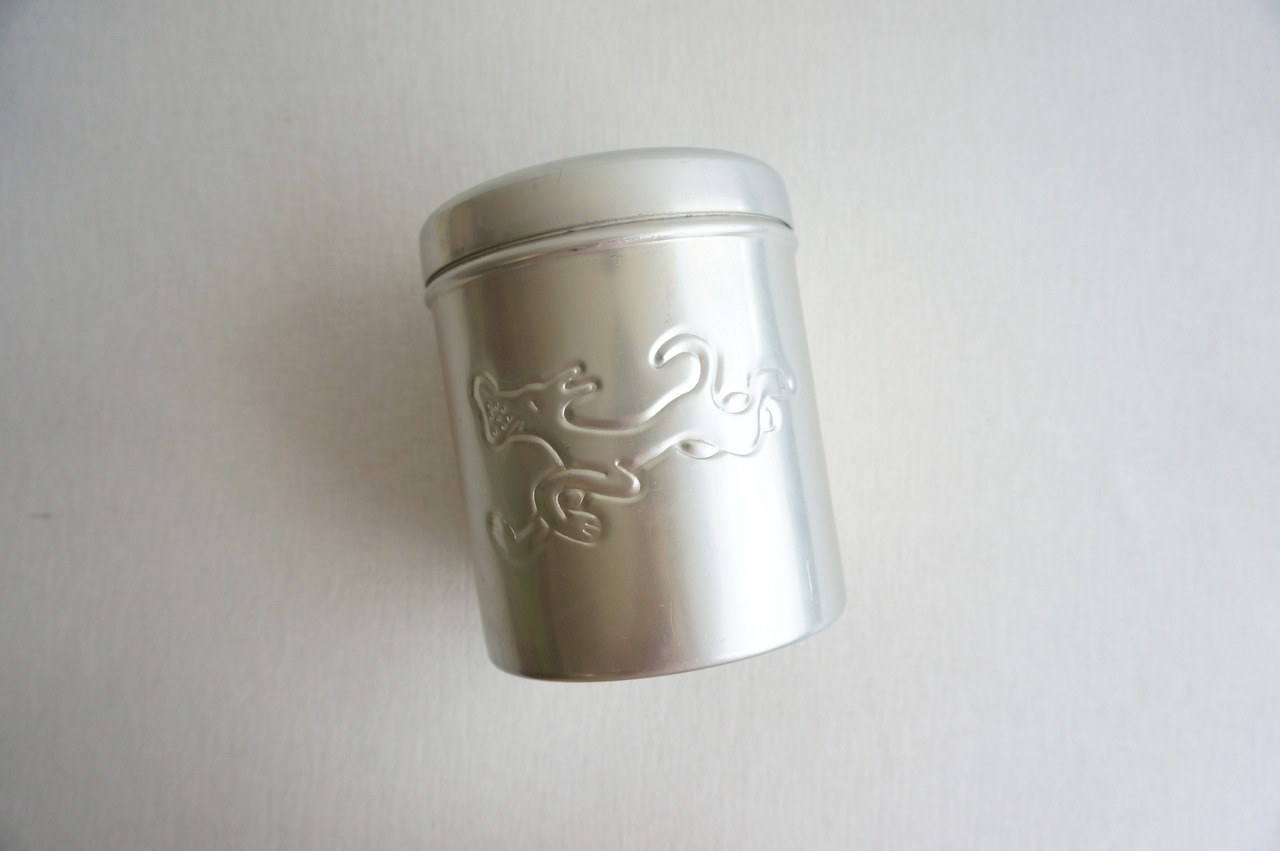 フィンランドで見つけた陽気なイヌのキャニスターです。