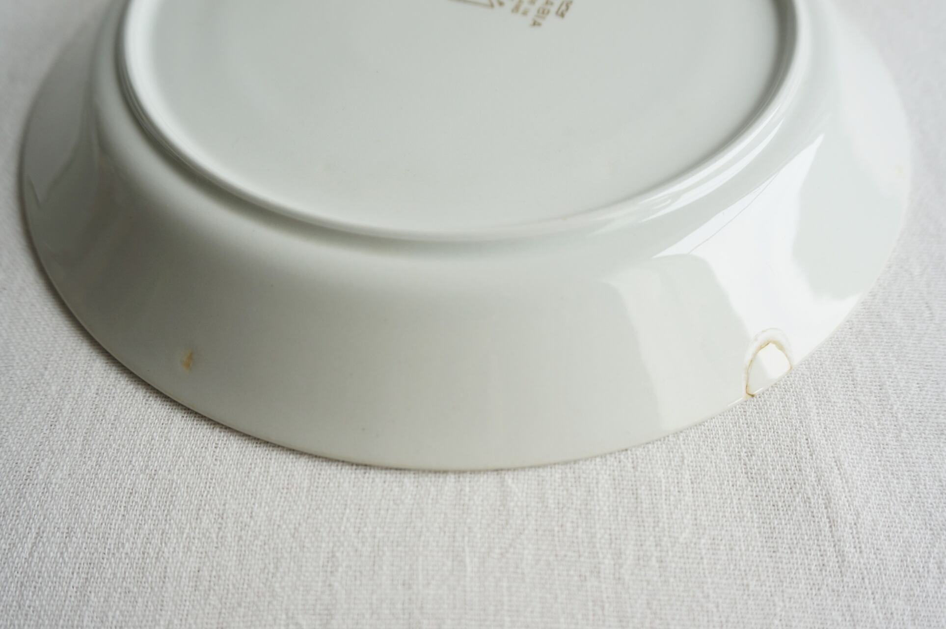 カトラリーの跡、製造時の黒点、裏面の淵に補修跡があります。