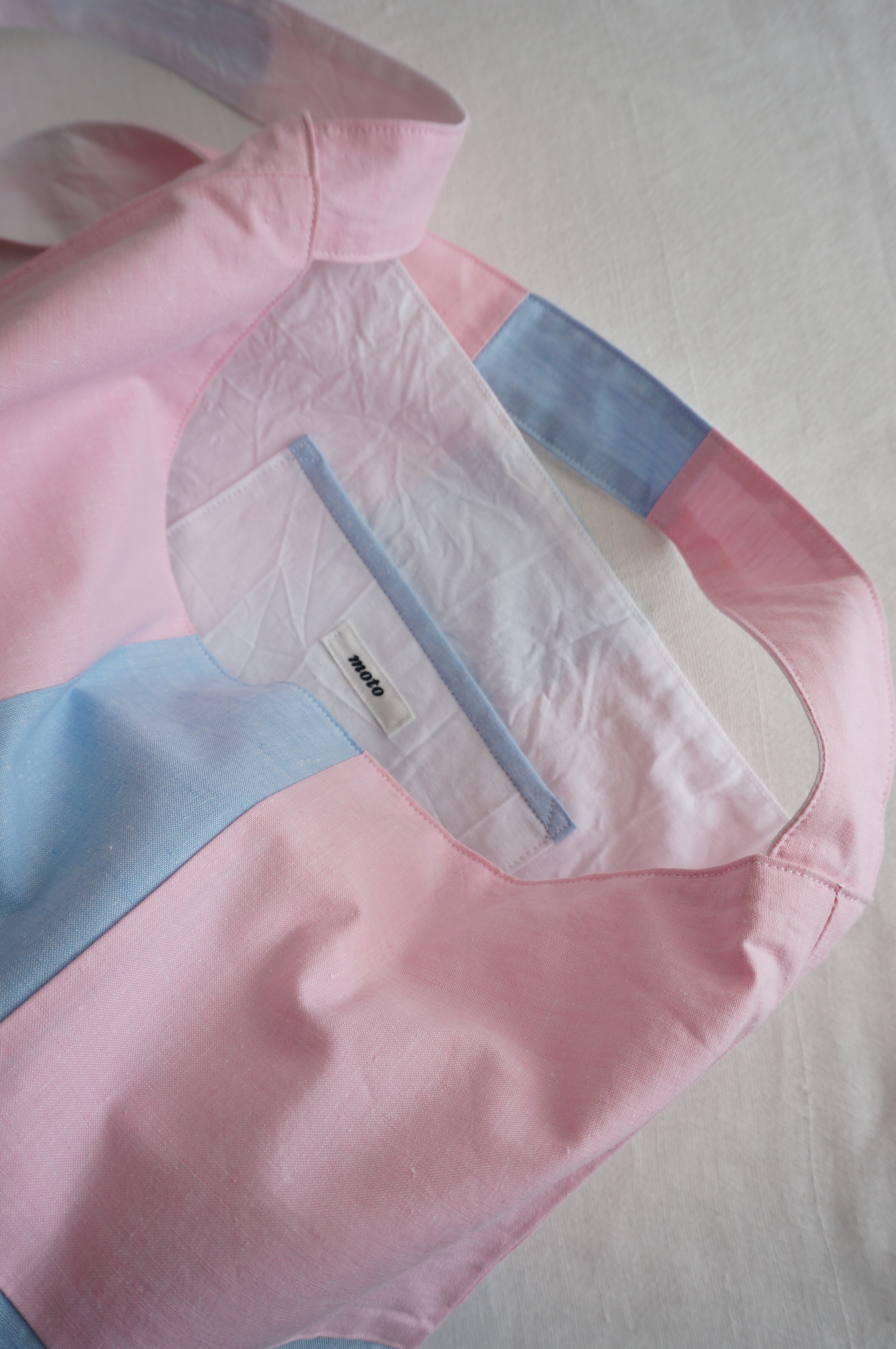 デッドストックのキルト生地をもとに仕立てたバッグ。