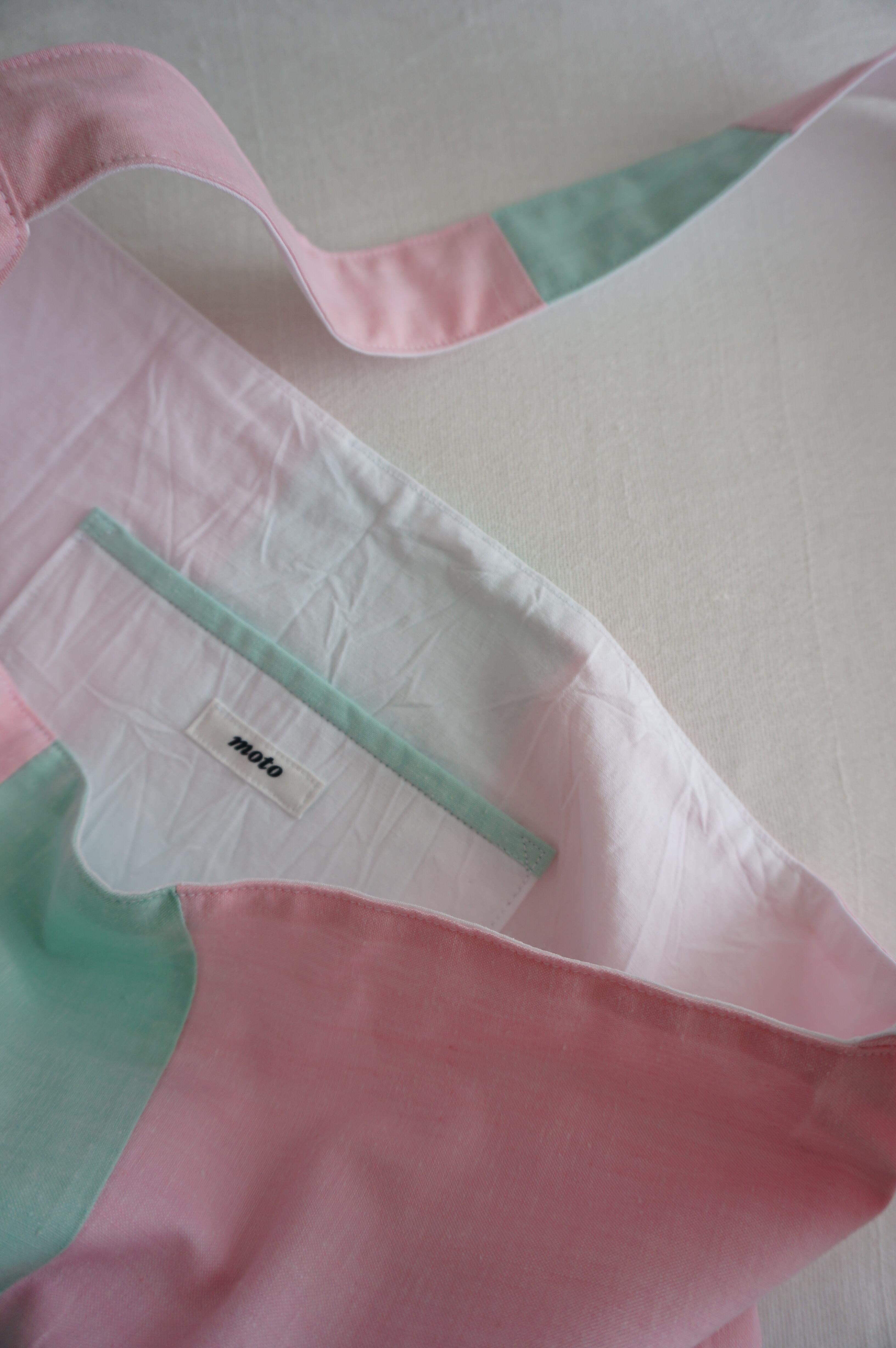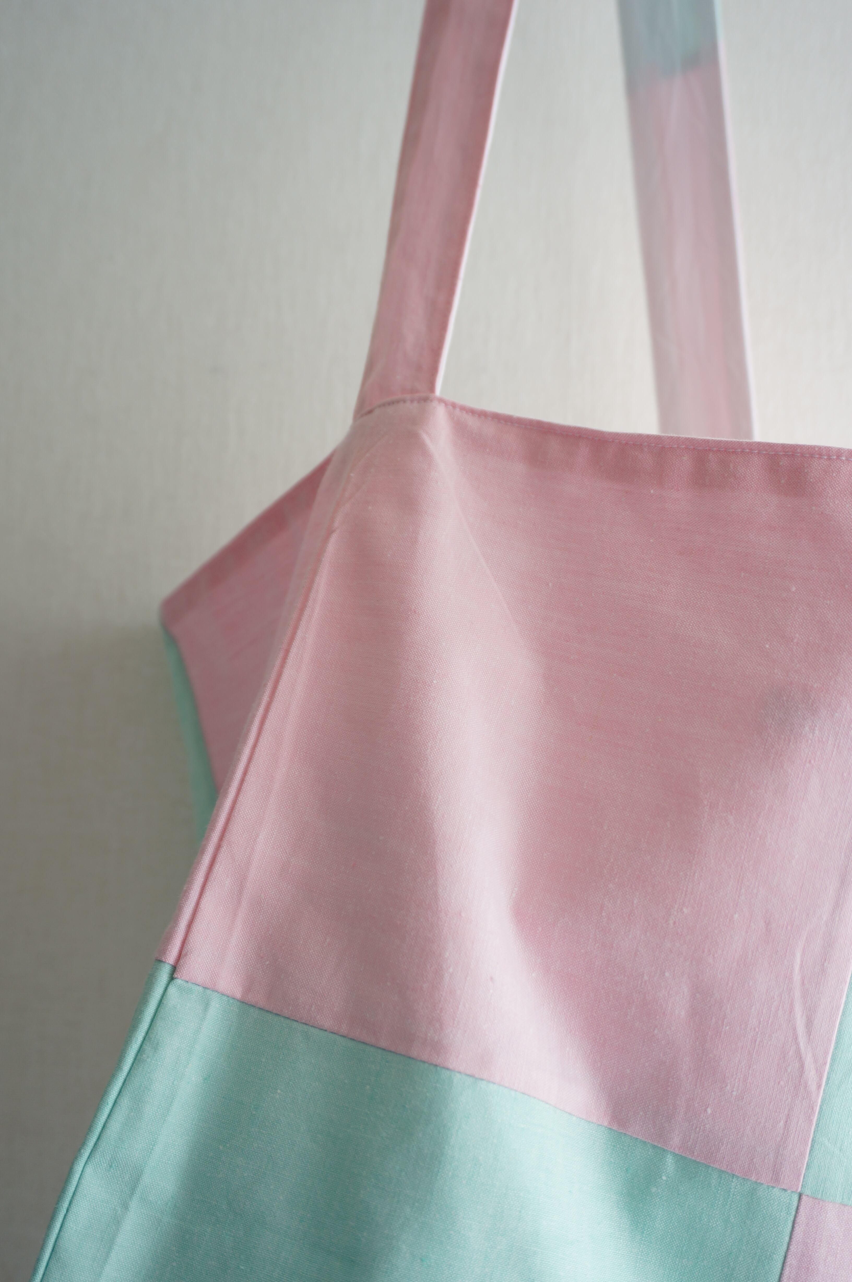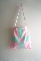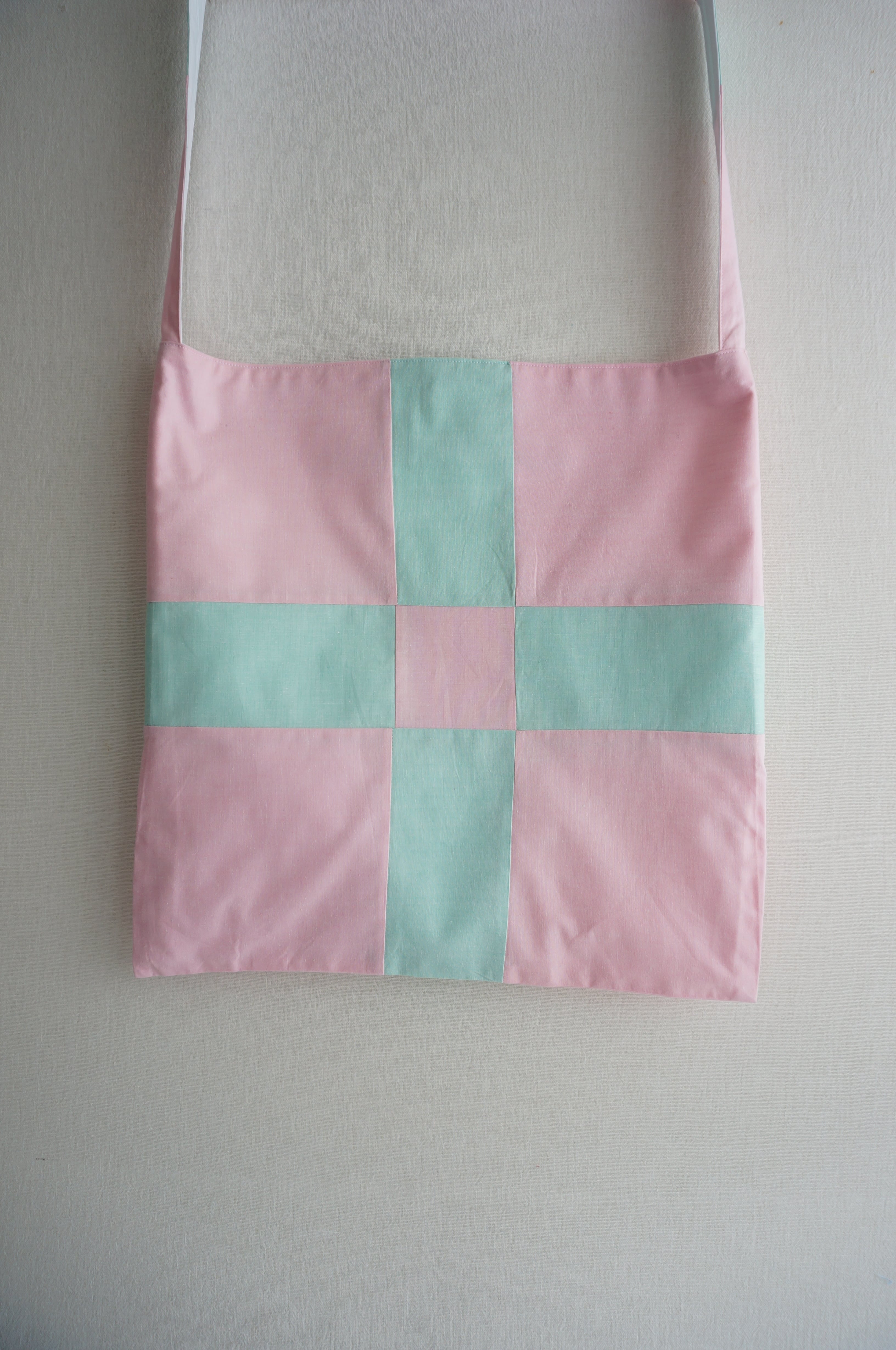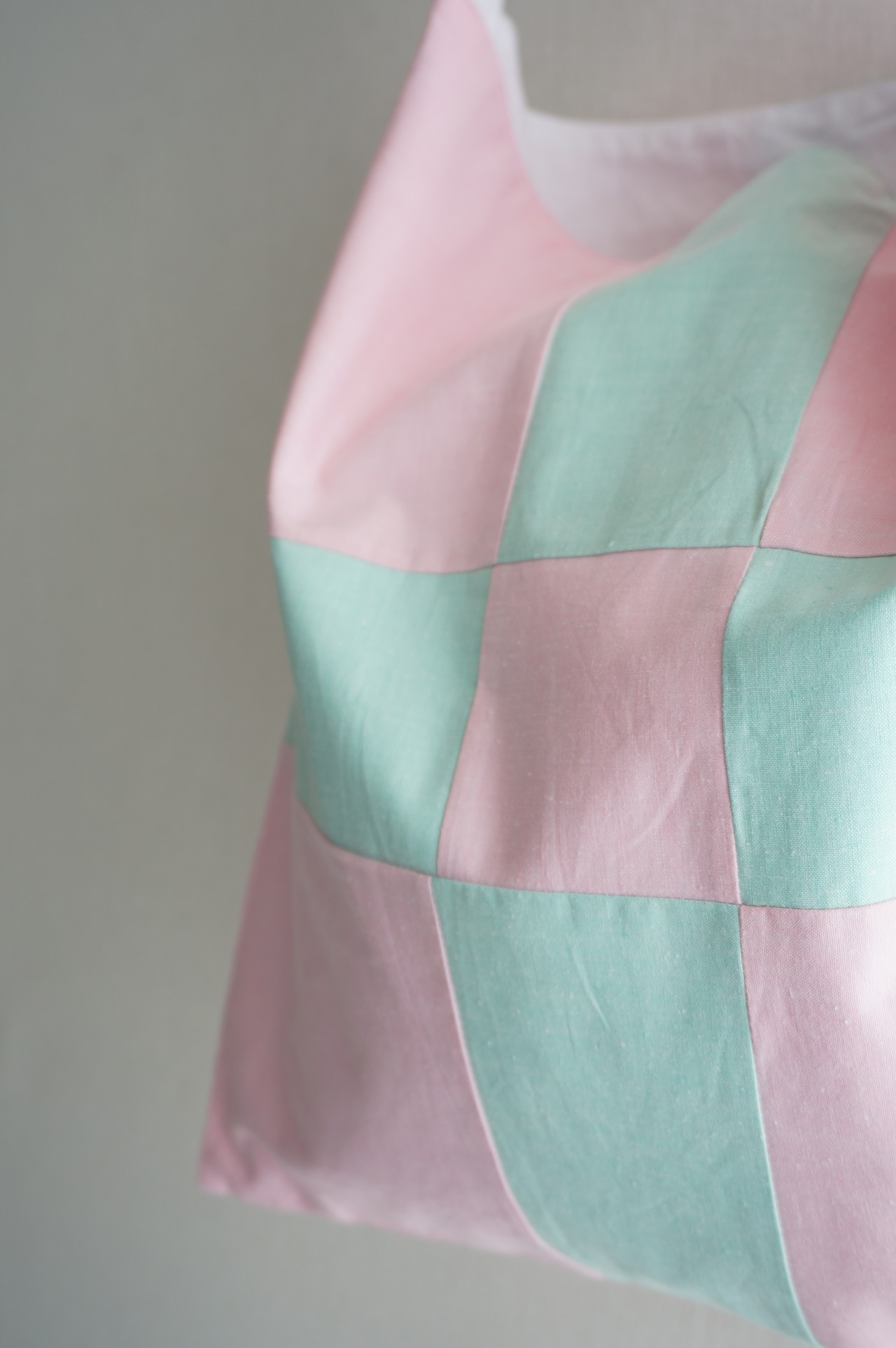 デッドストックのキルト生地をもとに仕立てたバッグ。