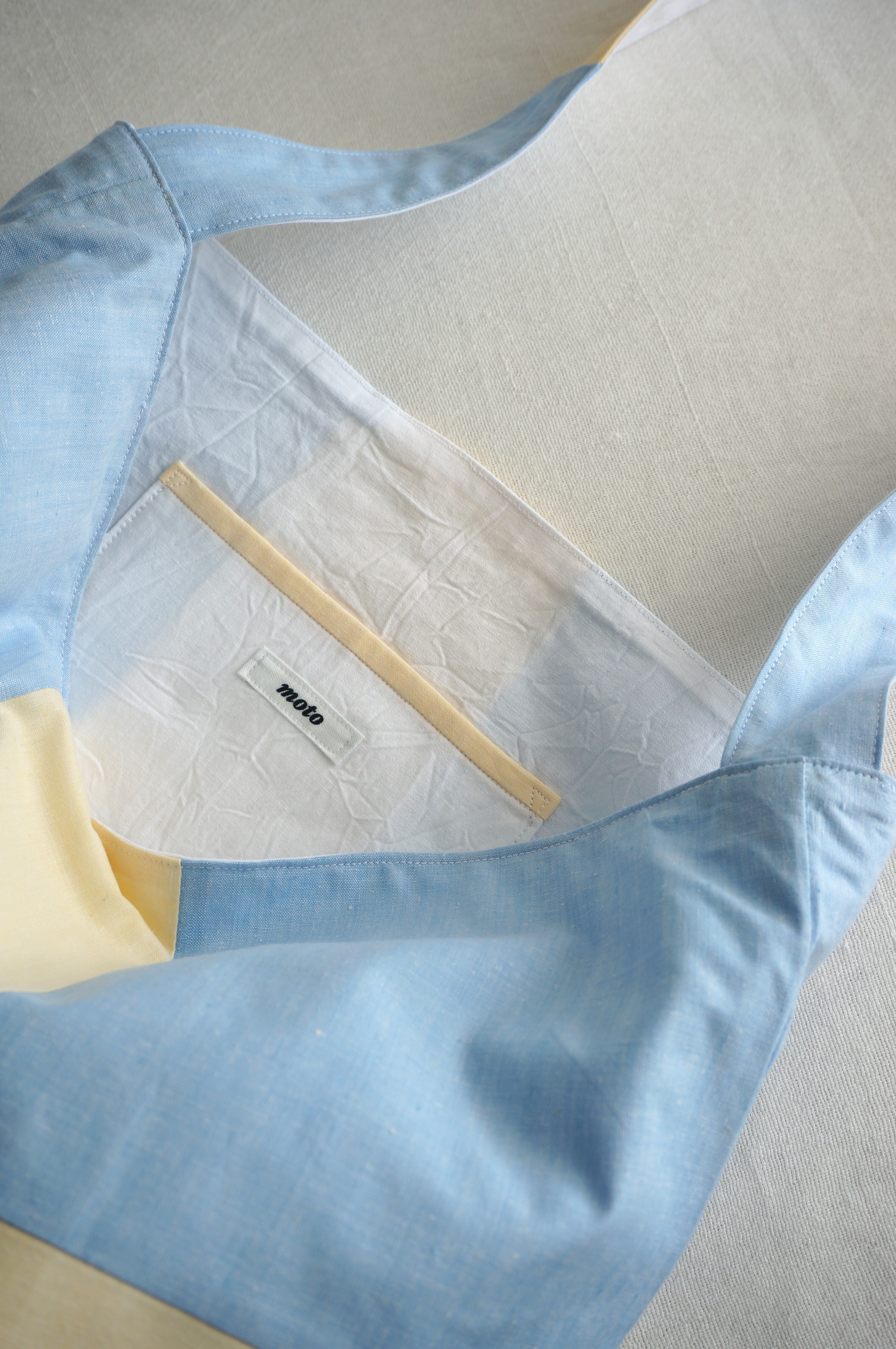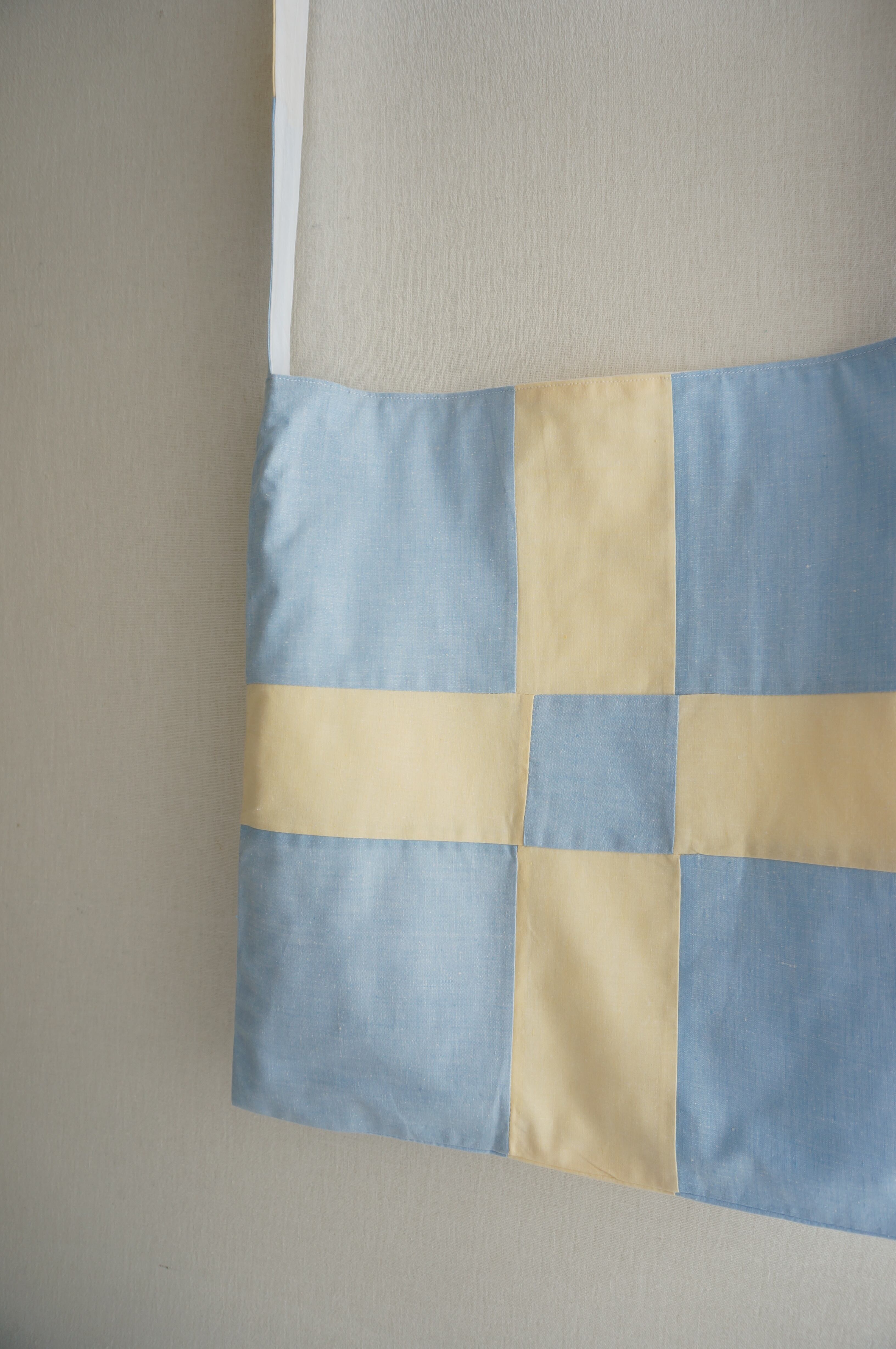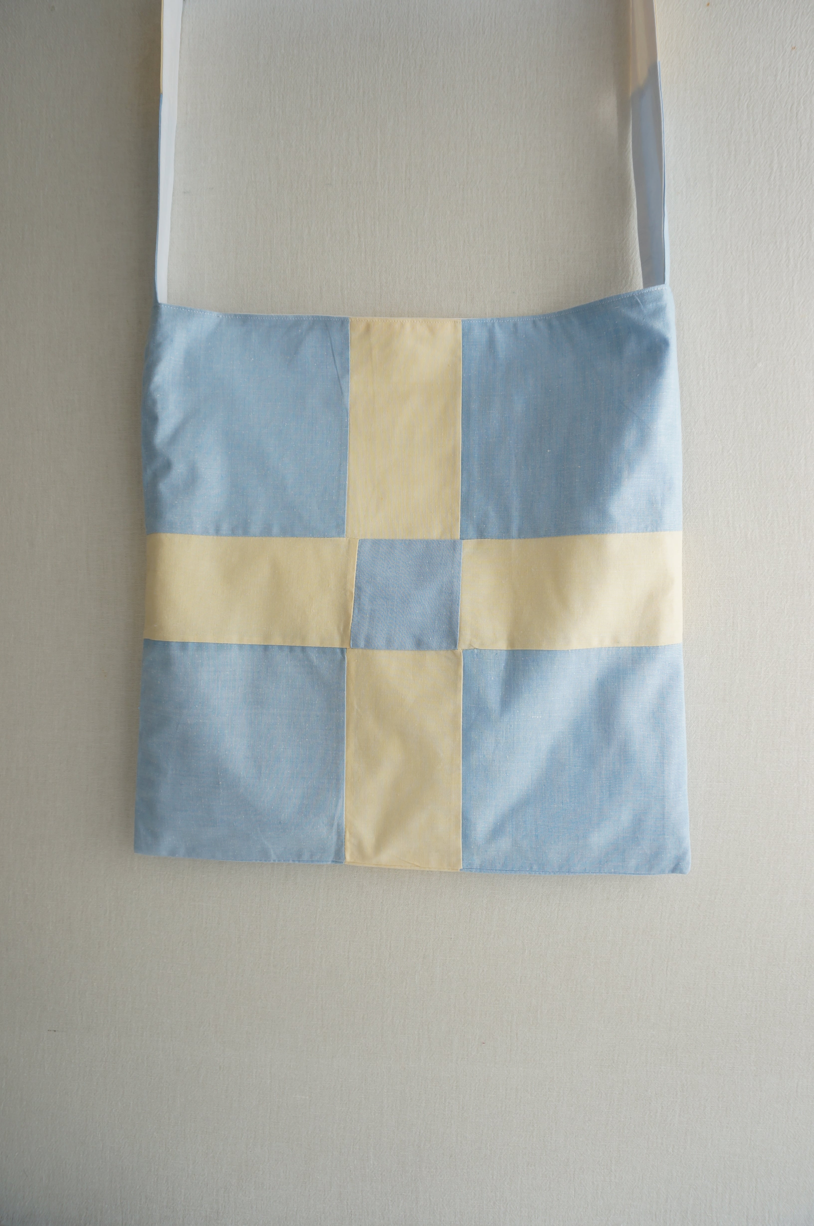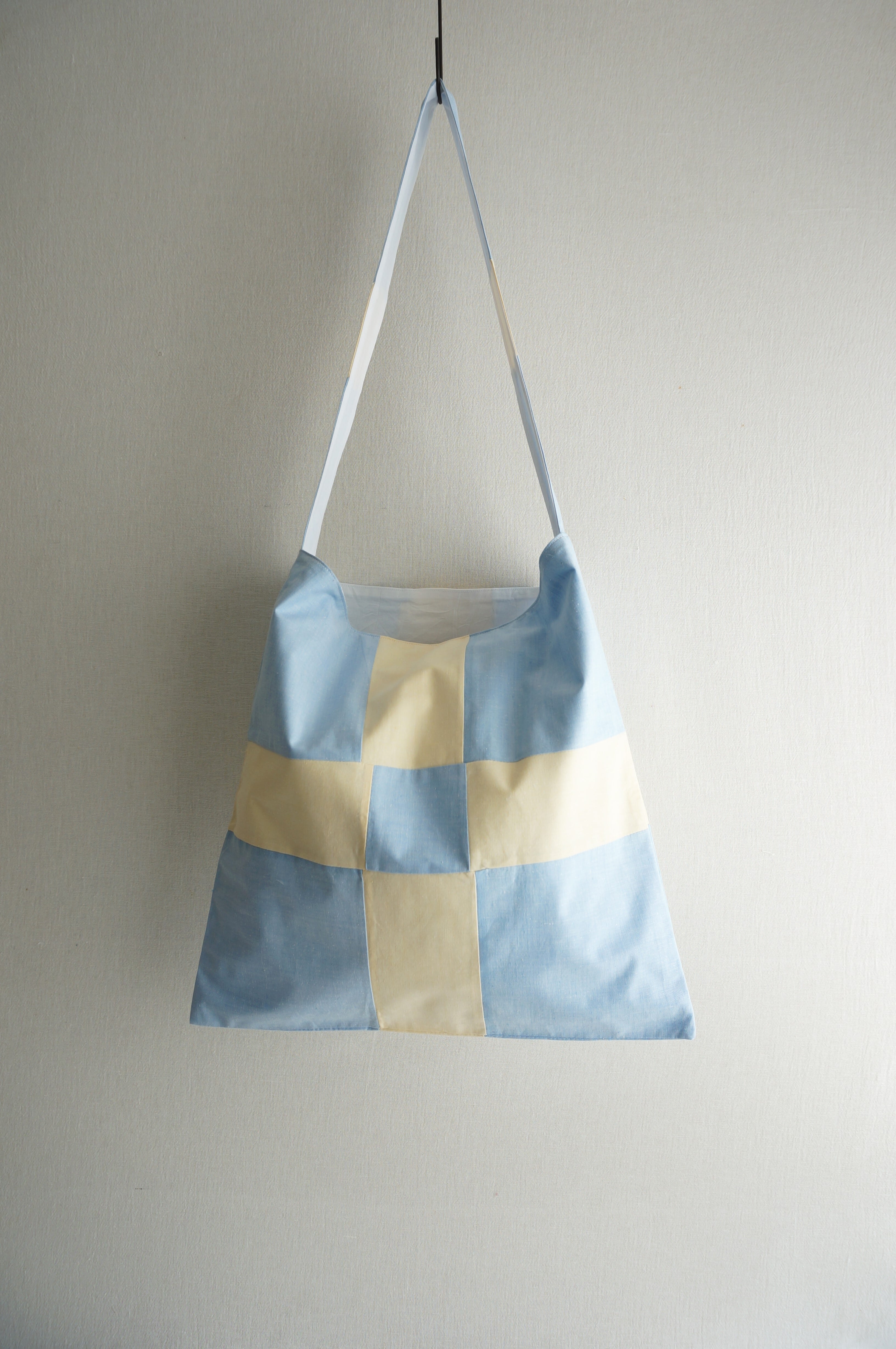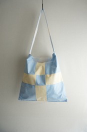 デッドストックのキルト生地をもとに仕立てたバッグ。