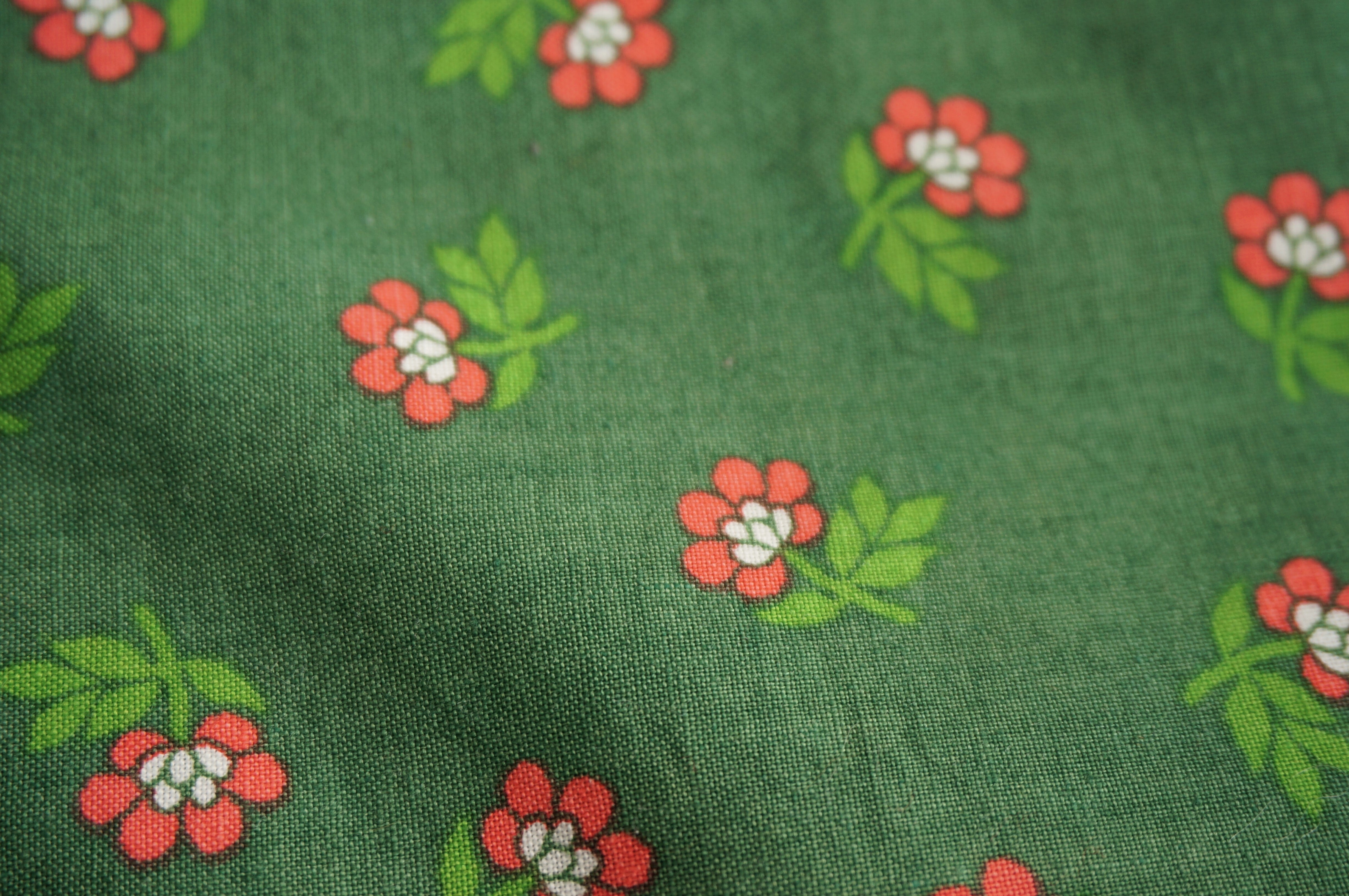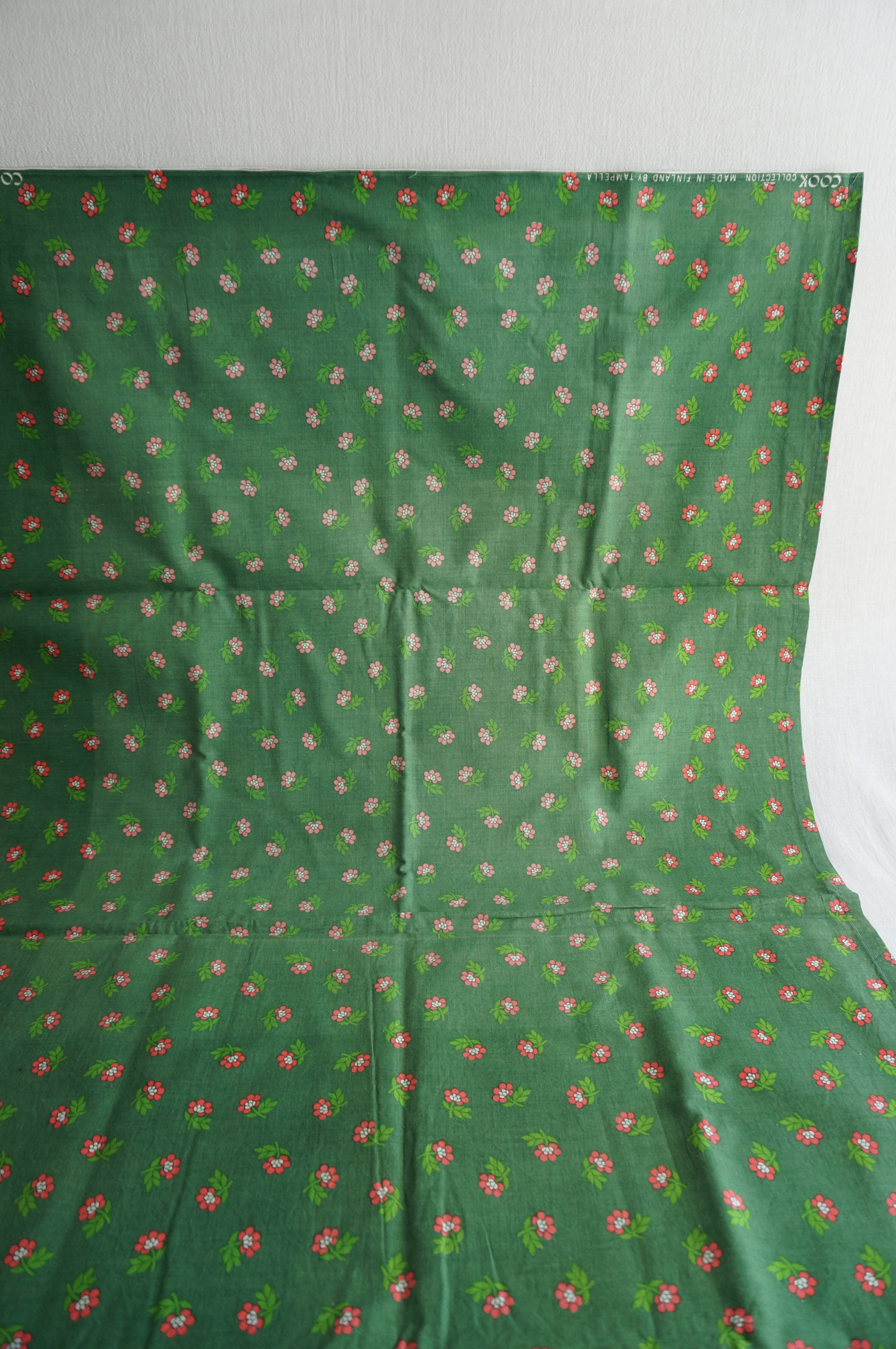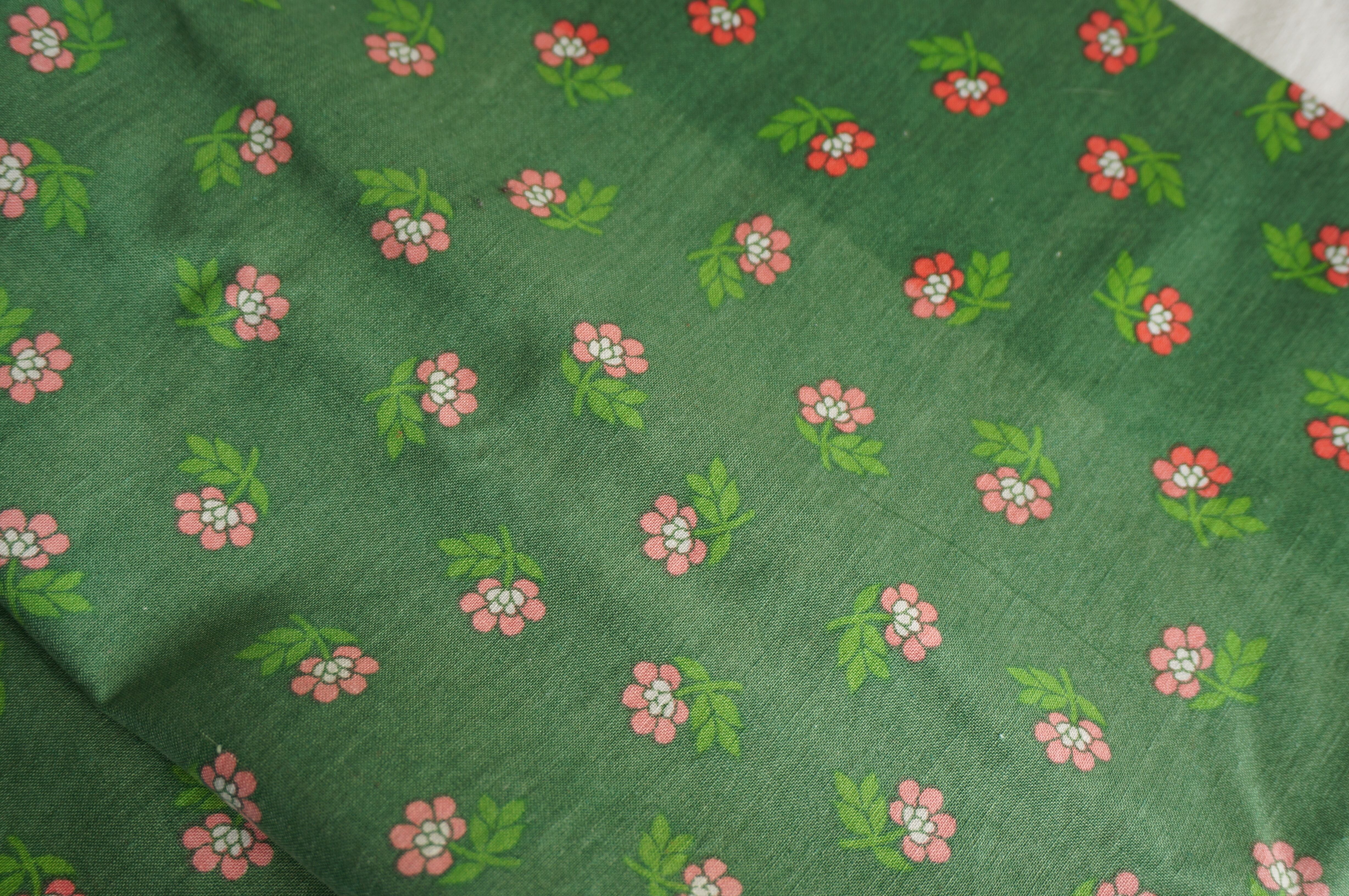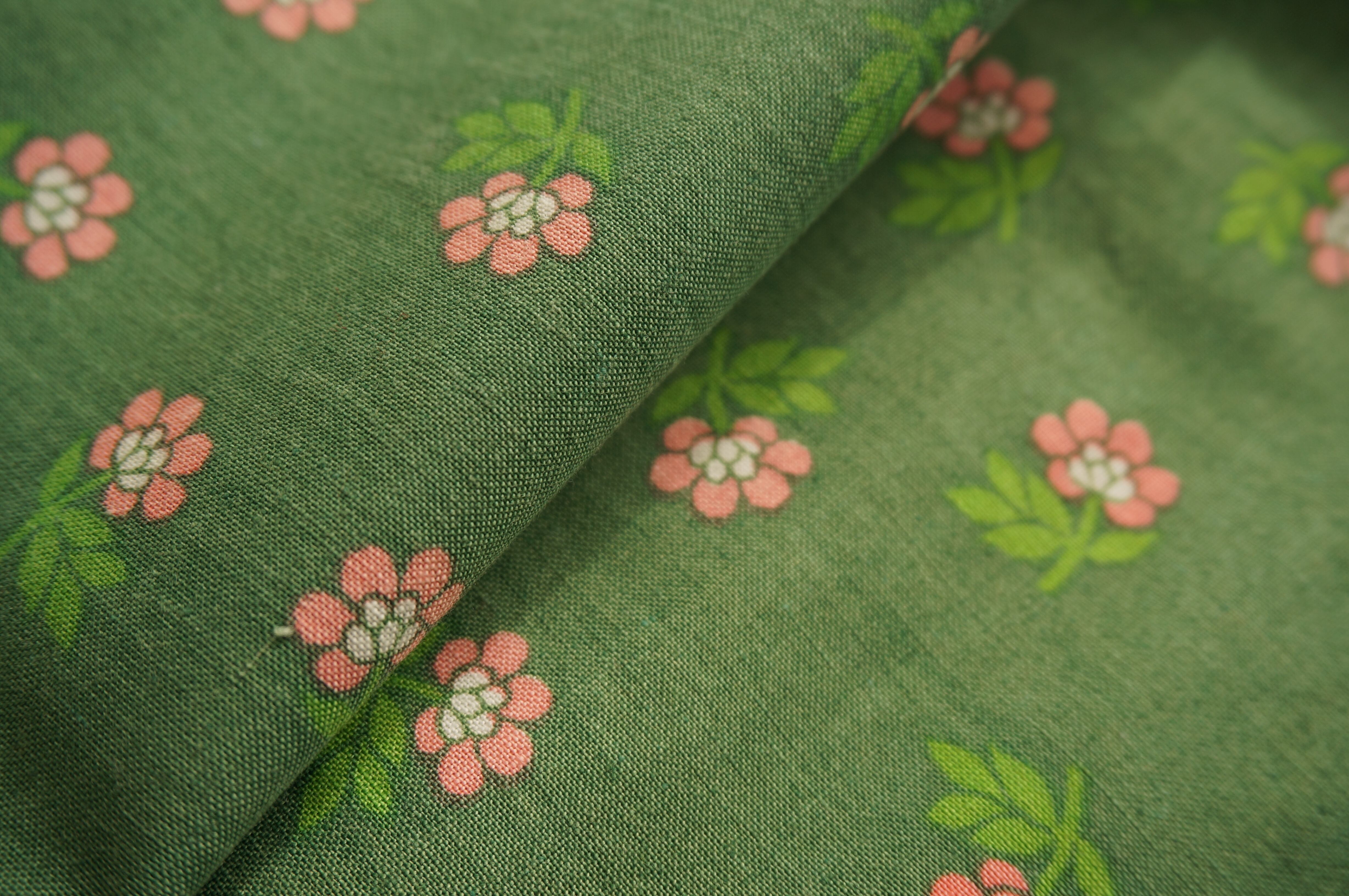 グリーンの生地にピンクの小花が散りばめられた