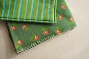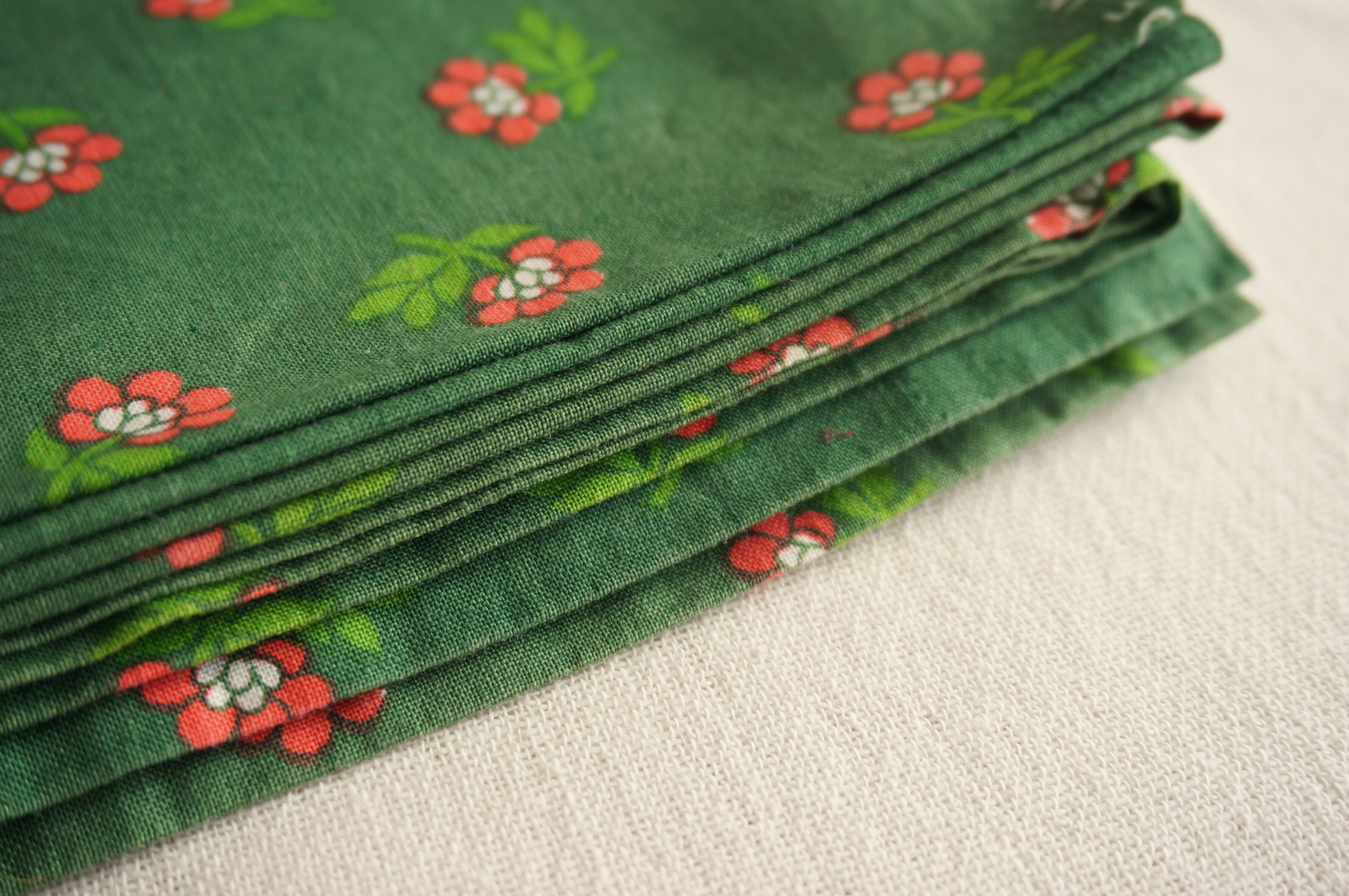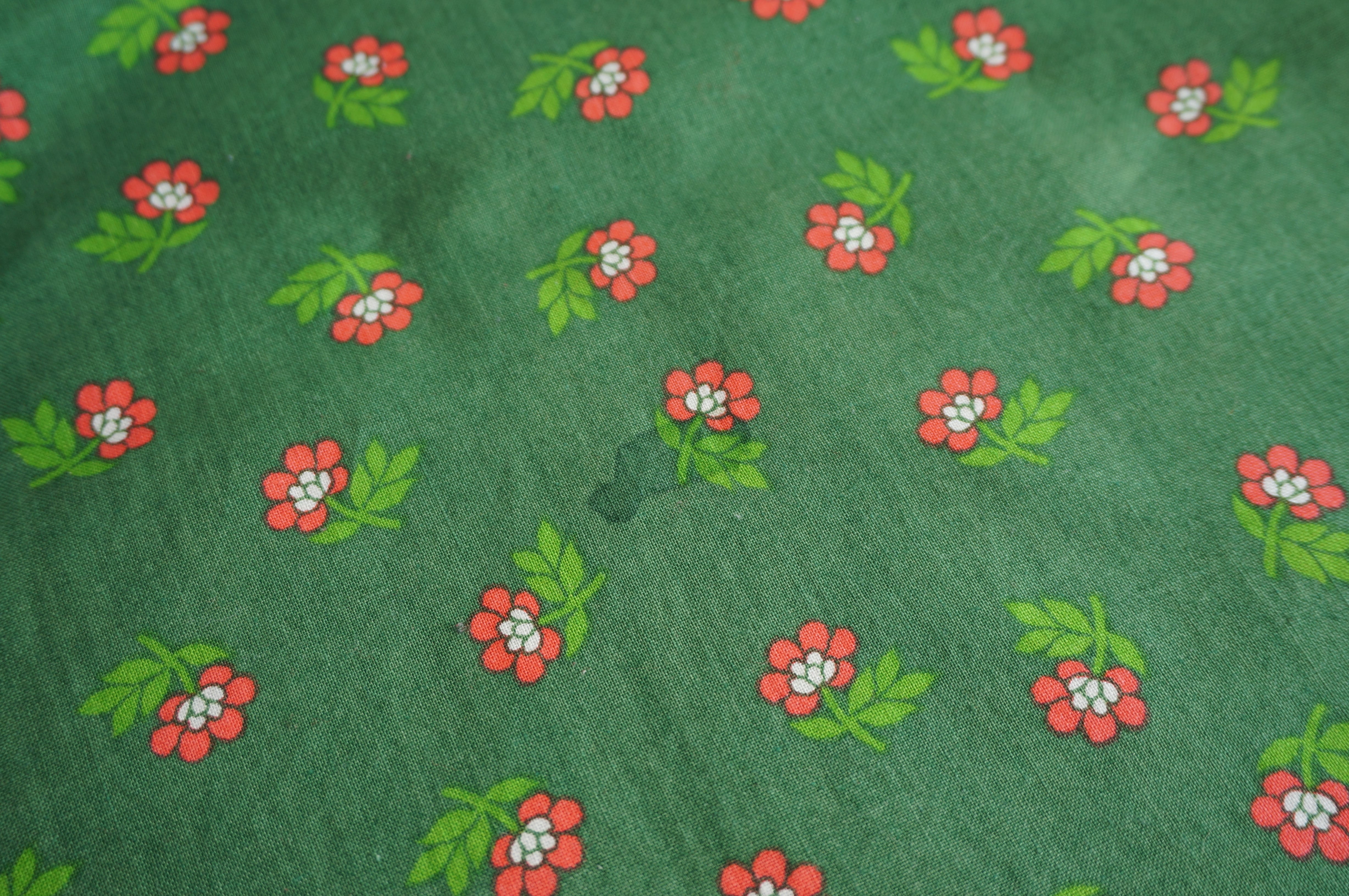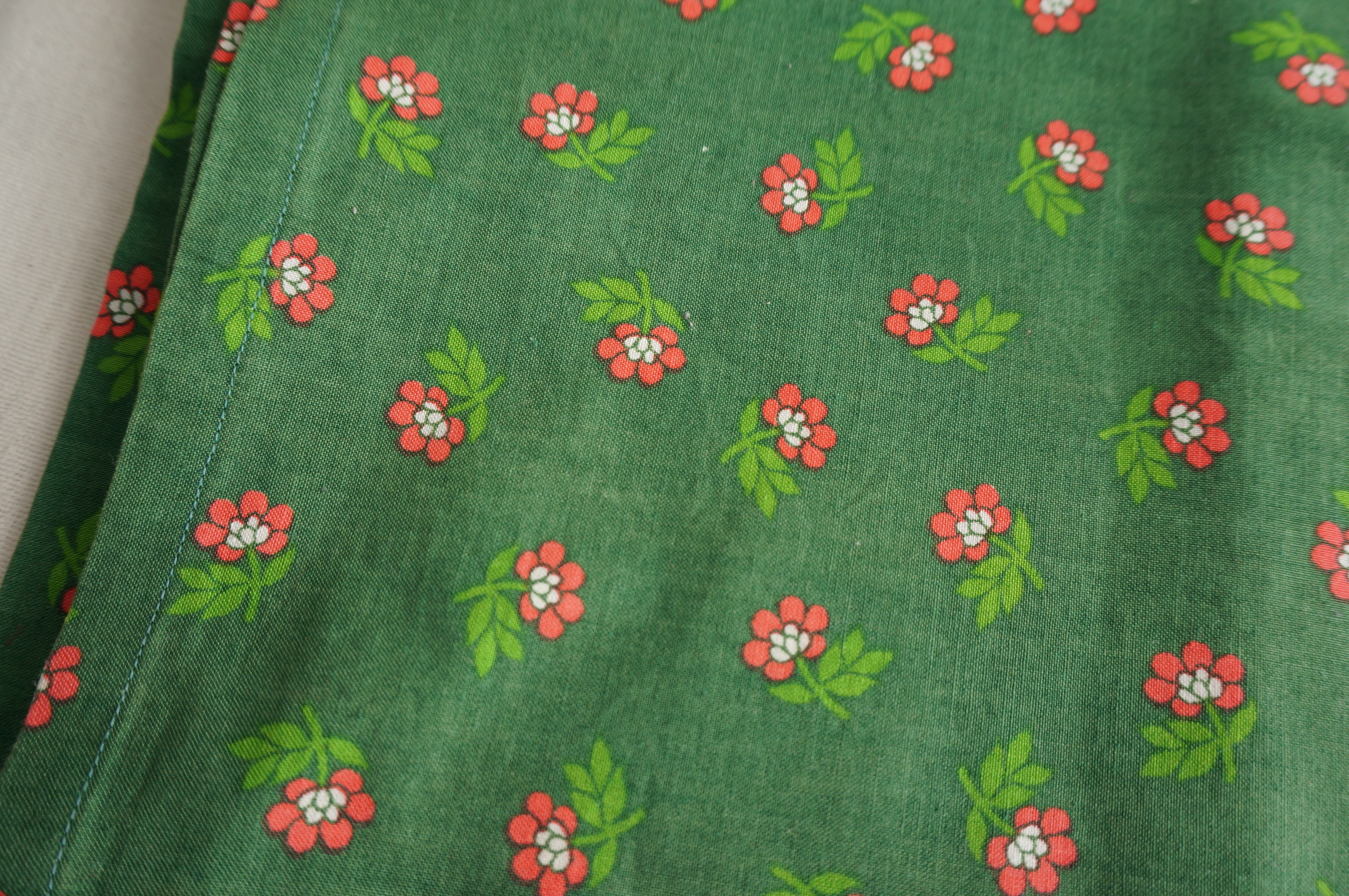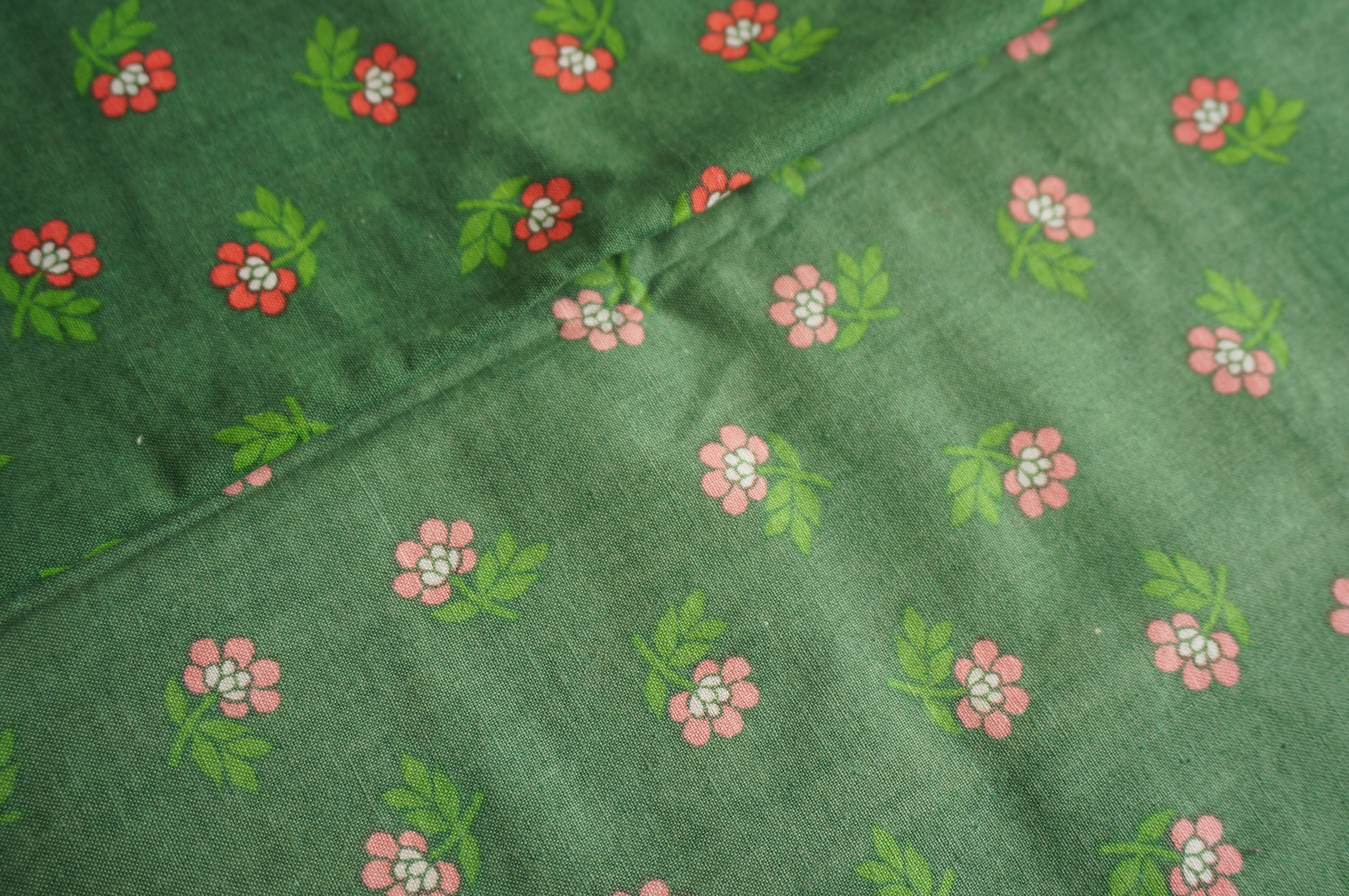 グリーンの生地にピンクの小花が散りばめられた