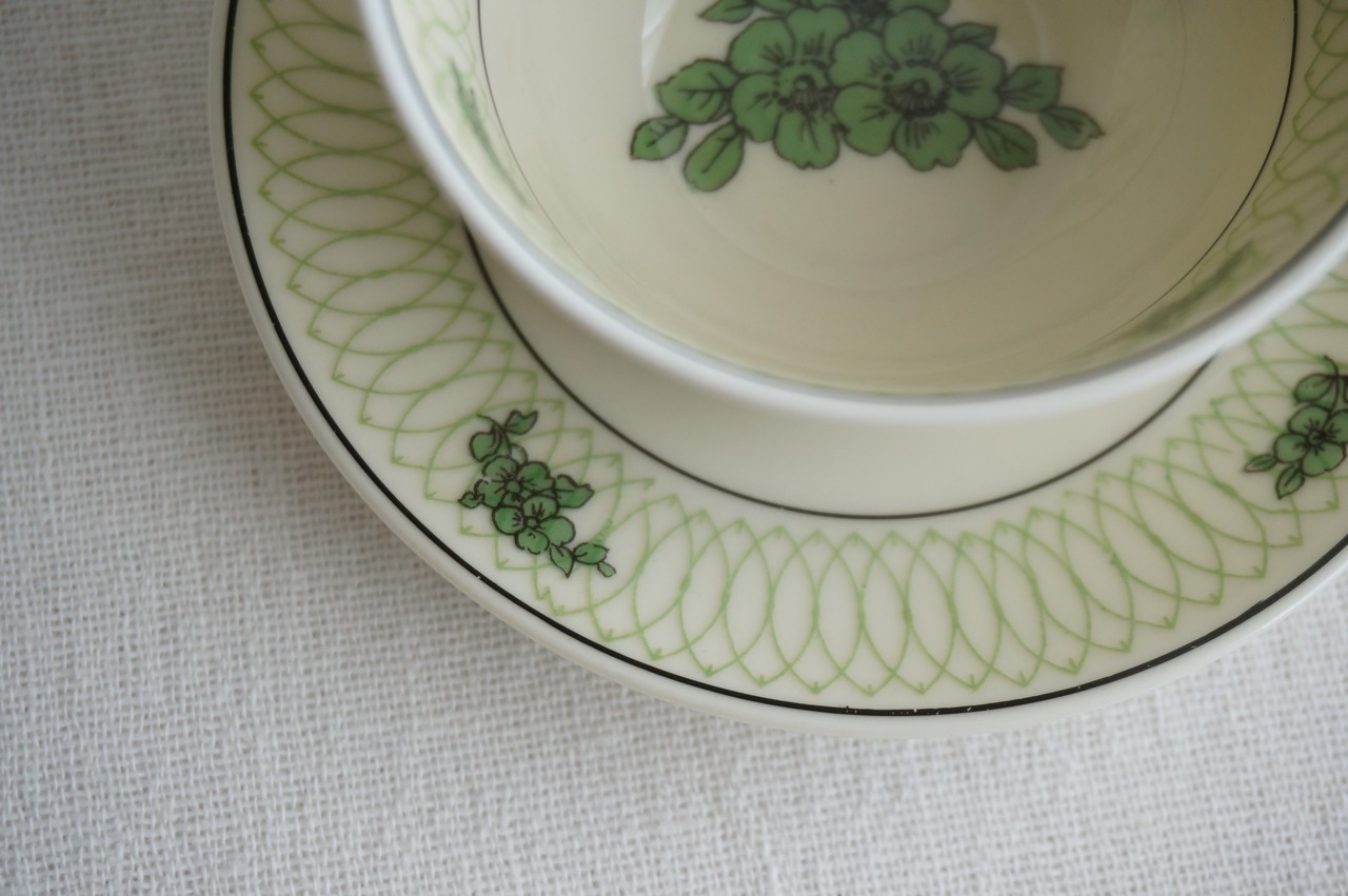 グリーン系のカップ&ソーサーというのも珍しい出会いです。